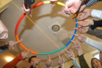 Položit tyčku na zem a stále se jí dotýkat? Zdá se, že na tom nic není. Vyzkoušejte si to. Tyčka je totiž z hélia! K úspěšnému zvládnutí úkolu je zapotřebí skvělý „týmový duch“, výborná komunikace a dobrá strategie.
